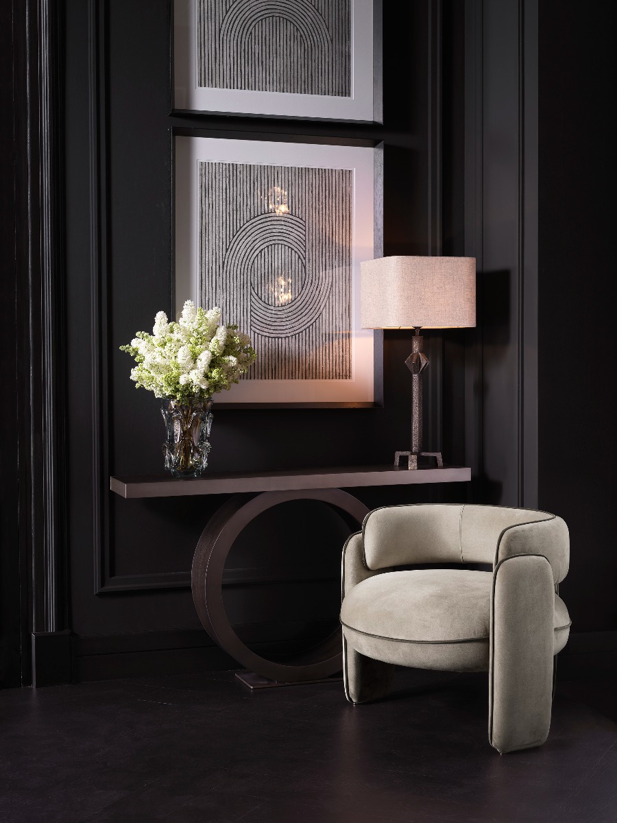 4. Chaplin Savona Greige Velvet Armchair
